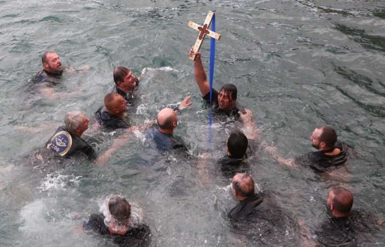 Με λαμπρότητα και παρουσία πλήθους πιστών πραγματοποιήθηκε το πρωί η τελετή καθαγιασμού των υδάτων και ρίψης του Τιμίου Σταυρού στον Α’ προβλήτα του λιμανιού της Θεσσαλονίκης. Συνολικά 56 τολμηροί, όλων των ηλικιών, βούτηξαν από σκάφη στον Θερμαϊκό Κόλπο και τον σταυρό έπιασε ο 23χρονος, Στέργιος Παγωνίδης.
