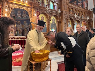 Ιδιαίτερα τιμητική υπήρξε η παρουσία αντιπροσωπείας του Λιμενικού Σώματος, το οποίο προσέρχεται κάθε χρόνο να τιμήσει τον προστάτη Άγιό του. Παρέστη ο κ. Ιωάννη Σχοινά εκπρόσωπος του κ. Σωτηρίου Δανίκα Λιμενάρχη Λουτρών Αιδηψού , με σεβασμό και ευλάβεια, μεταφέροντας την αγάπη και την εμπιστοσύνη των ανθρώπων της θάλασσας στον Άγιο Νικόλαο.
