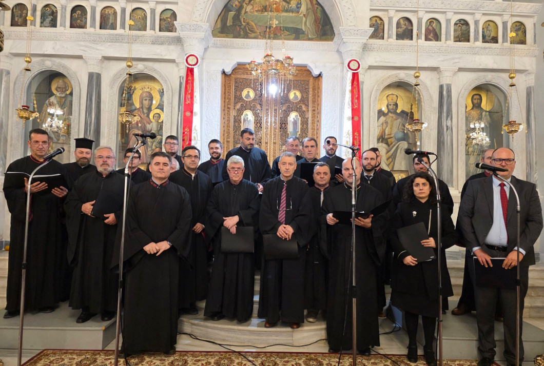 Το κεντρικό μέρος της βραδιάς καλύφθηκε από τον Σύλλογο Ιεροψαλτών Νομού Ηλείας «Άγιος Ιωάννης ο Δαμασκηνός», ο οποίος απέδωσε με εξαιρετική αρμονία εμβληματικούς ύμνους των Χριστουγέννων. Το κοινό είχε την ευκαιρία να ακούσει, μεταξύ άλλων, τα τροπάρια «Η Παρθένος σήμερον», «Βηθλεέμ ετοιμάζου» και «Χριστός γεννάται», καθώς και το επιβλητικό «Κράτημα» του Ιωάννου Πρωτοψάλτου.
