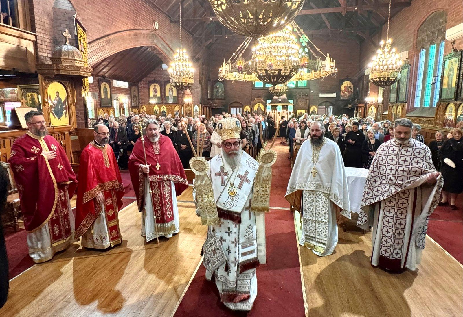 Το επόμενο πρωί, ο Θεοφιλέστατος Επίσκοπος κ. Κυριακός χοροστάτησε στον Όρθρο και προεξήρχε της Πανηγυρικής Αρχιερατικής Θείας Λειτουργίας, περιστοιχούμενος από κληρικούς από όλη την Ι. Επισκοπή Μελβούρνης, με την παρουσία ευσεβών πιστών που κατέκλυσαν και πάλι τον Ιερό Ναό.
