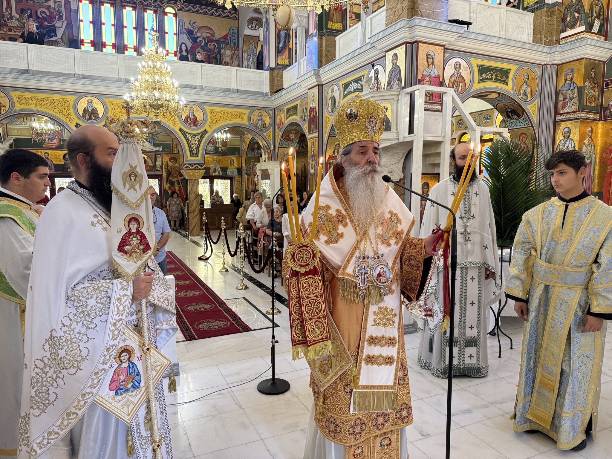 Στον Ιερό Ναό Αγίου Ελευθερίου Καμινίων ιερούργησε χθες Κυριακή μετά την Ύψωση του Τιμίου και Ζωοποιού Σταυρού του Κυρίου (21 Σεπτεμβρίου 2025) ο Σεβασμιώτατος Μητροπολίτης Πειραιώς κ. Σεραφείμ.