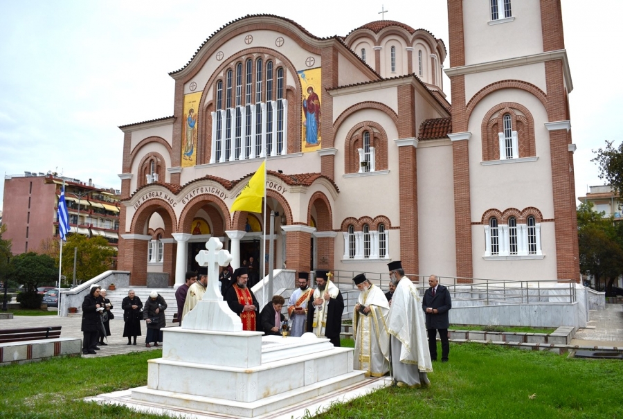 Κατόπιν, τελέσθηκε Τρισάγιο στο μνήμα του μακαριστού Μητροπολίτου, το οποίο βρίσκεται στον αύλειο χώρο του Ιερού Καθεδρικού Ναού.
