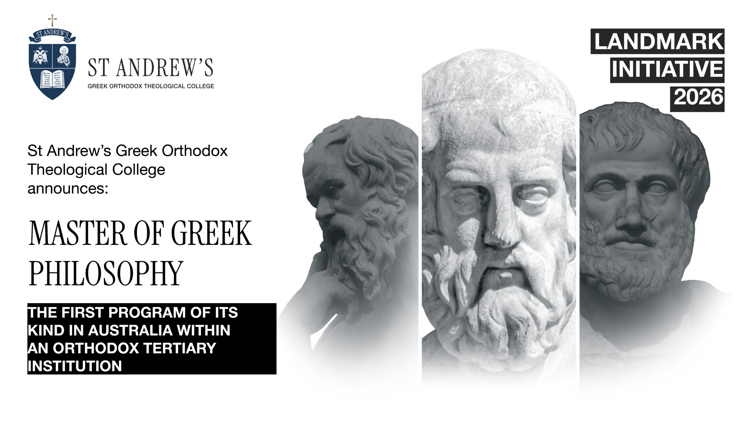 Με μεγάλη χαρά και ικανοποίηση η Θεολογική Σχολή του Αποστόλου Ανδρέου, στο Σύδνεϋ, ανακοινώνει μια ακαδημαϊκή πρωτοβουλία – ορόσημο: την εισαγωγή ενός νέου μεταπτυχιακού προγράμματος, του Μεταπτυχιακού με αντικείμενο την Ελληνική Φιλοσοφία, που θα ξεκινήσει από το Ακαδημαϊκό Έτος 2026.