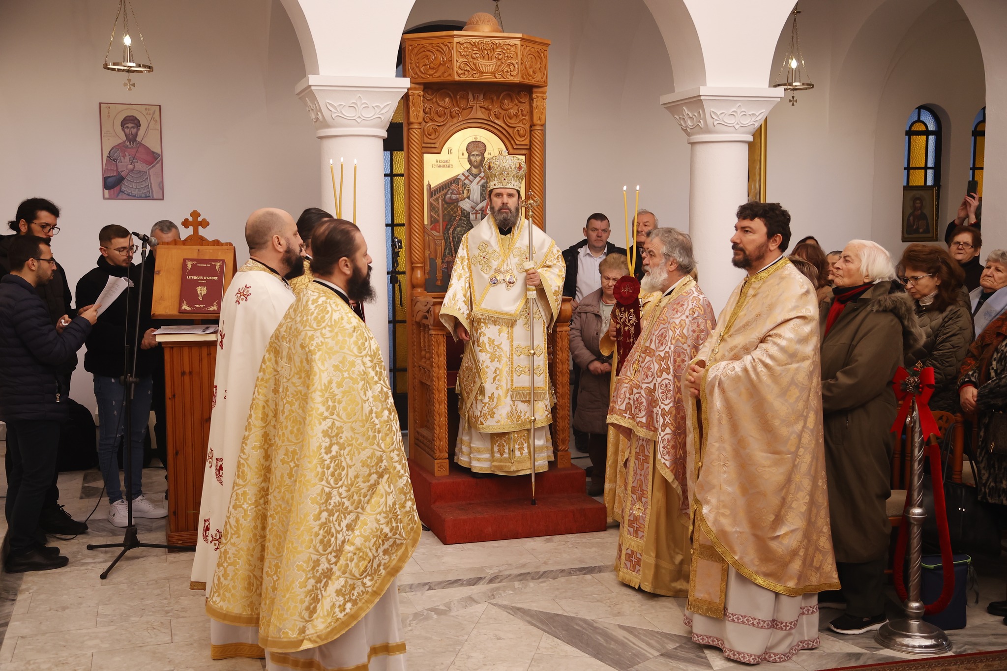 Τον Προκαθήμενο της εν Αλβανία Αυτοκεφάλου Ορθοδόξου Εκκλησίας προσφώνησε πριν το τέλος της Θείας Λειτουργίας ο ιερέας της ενορίας π. Αλέξανδρος ο οποίος με συγκίνηση μίλησε για το πώς δημιουργήθηκε αυτή η ενορίας μνημονεύοντας τον μακαριστό Αρχιεπίσκοπο κυρό Αναστάσιο και καλωσορίζοντας τον διάδοχό του κ.κ. Ιωάννη σε αυτή την ιστορική ημέρα για την ενορία.
