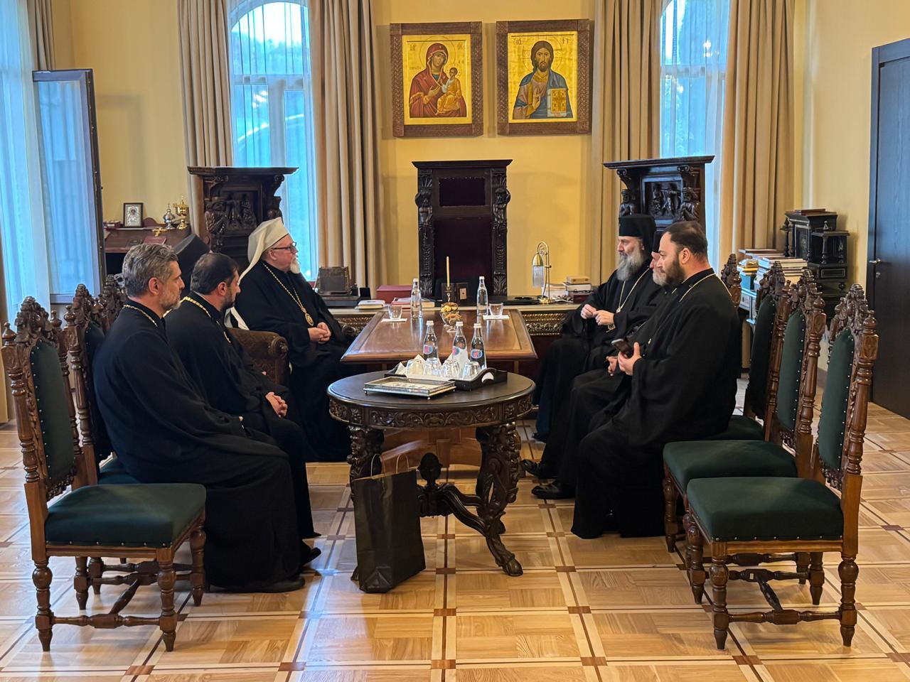 Τον Σεβασμιώτατο υποδέχθηκε ο τοποτηρητής του Πατριάρχη της Γεωργίας, Σεβ. Μητροπολίτης Σενάκι κ. Σίο, ενώ στη συνάντηση συμμετείχαν ο Αρχιγραμματέας της Ιεράς Συνόδου και άλλοι κληρικοί.