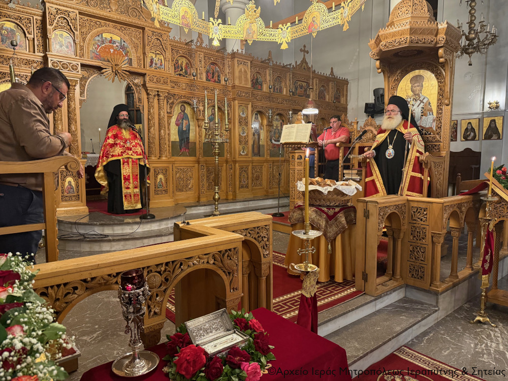 Στην ακολουθία χοροστάτησε ο Σεβ. Μητροπολίτης Ιεραπύτνης και Σητείας κ. Κύριλλος, ο οποίος ευλόγησε τους προσφερόμενους άρτους και κήρυξε επίκαιρα τον θείο λόγο.
