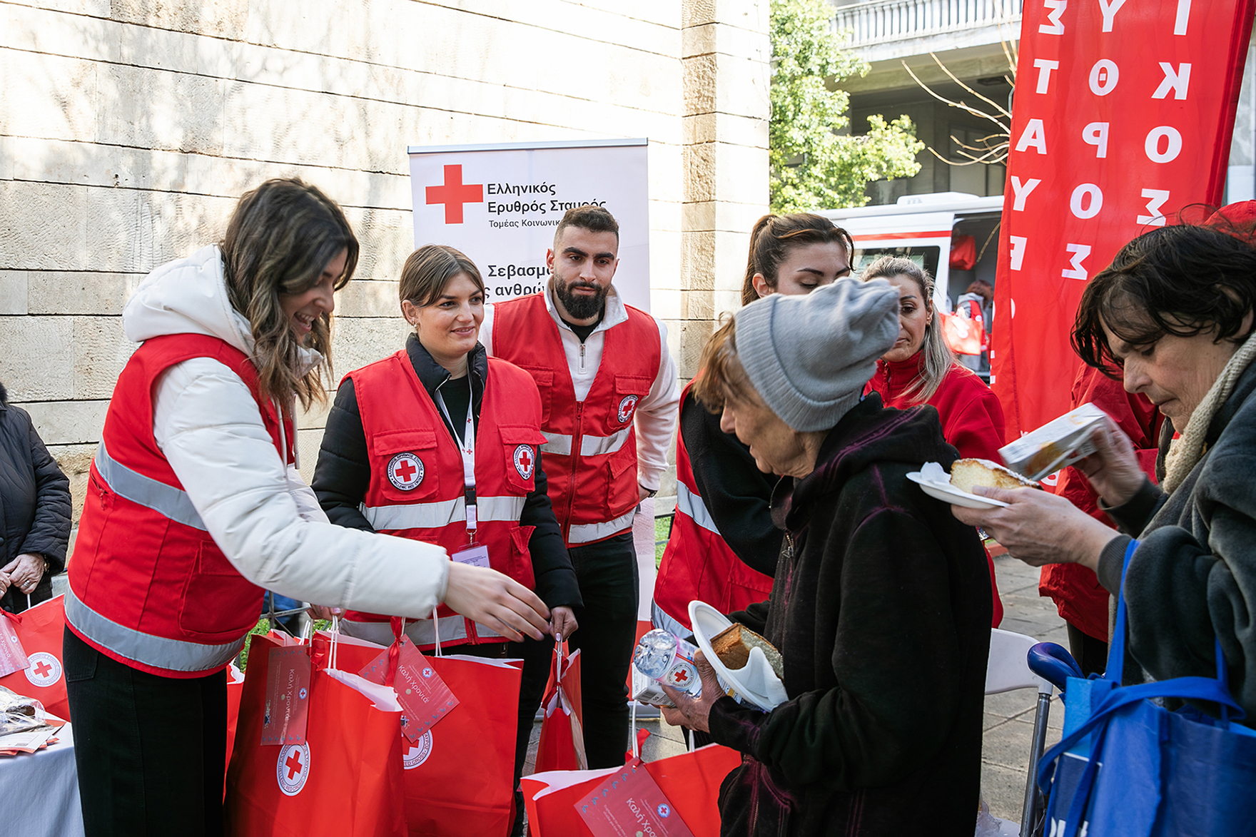 Ο Τομέας Κοινωνικής Πρόνοιας του Ελληνικού Ερυθρού Σταυρού (Ε.Ε.Σ.), στο πλαίσιο της συνεχούς στήριξης ευάλωτων ομάδων πληθυσμού, υλοποίησε με επιτυχία την Παρασκευή 23 Ιανουαρίου 2026, εορταστική δράση για τους άστεγους συμπολίτες μας, προσφέροντας μοναδικές στιγμές χαράς και κοινωνικοποίησης στους συνανθρώπους μας που διαβιούν υπό δυσμενείς συνθήκες στο κέντρο της Αθήνας, παρουσία του Προέδρου του Ε.Ε.Σ. Dr. Αντώνιου Αυγερινού και του Βουλευτή Επικρατείας και εθελοντή Σαμαρείτη – Διασώστη, κ. Γιώργου Σταμάτη.
