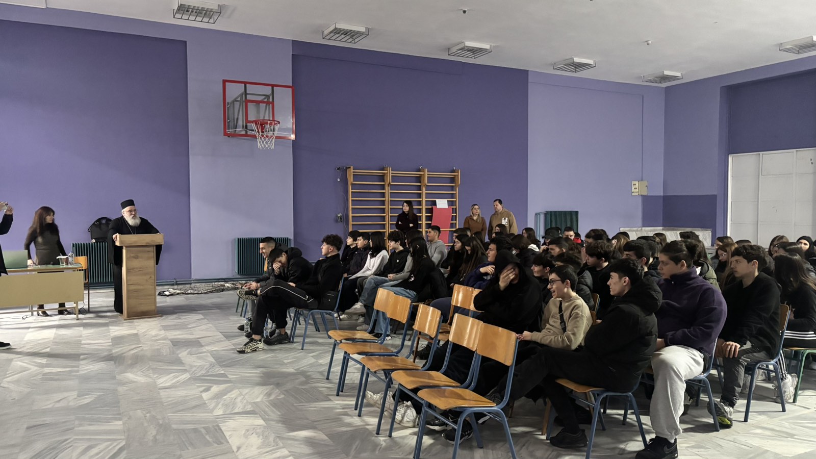 Ο Θεοφιλέστατος μίλησε για τις δυσκολίες αλλά και τη σημασία της ιεραποστολής, τονίζοντας την αξία της αλληλεγγύης, της προσφοράς και της αγάπης προς τον συνάνθρωπο. Οι μαθητές παρακολούθησαν με ενδιαφέρον την παρουσίαση και έθεσαν ερωτήματα σχετικά με τη ζωή των ανθρώπων στην Αφρική, το έργο της Εκκλησίας και τις εμπειρίες που αποκόμισε από την αποστολή του.