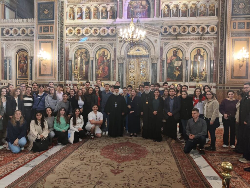 Η περιήγηση ξεκίνησε από τον Ιερό Καθεδρικό και Μητροπολιτικό ναό της Ιεράς Αρχιεπισκοπής Αθηνών, ο Ευαγγελισμός της Θεοτόκου, όπου ο Προϊστάμενος Πρωτοπρεσβύτερος π. Θωμάς Συνοδινός ξενάγησε τους νέους στο Κειμηλιαρχείο και παρουσίασε την ιστορική σημασία του Ναού και τη σύνδεσή του με την πορεία του νεότερου ελληνικού κράτους.