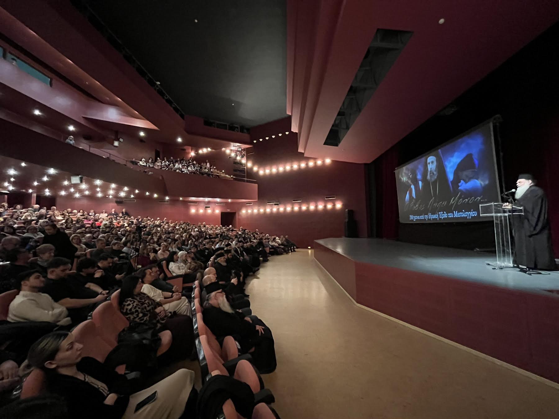 Στην συνέχεια τον λόγο έλαβε ο Αιδεσιμολογιώτατος Πρωτοπρεσβύτερος Κωνσταντίνος Καντάνης, ο οποίος μετέφερε τις ευχές και τις ευχαριστίες του Σεβασμιωτάτου Μητροπολίτου Αιτωλίας και Ακαρνανίας κ. Δαμασκηνού· τις ευχές για την επιτυχία της ταινίας και τις ευχαριστίες για το γεγονός ότι η Κινηματογραφική Ομάδα μιας Βορειοελλαδίτικης ιστορικής Μητροπόλεως ασχολήθηκε με την ένδοξη ιστορία του Μεσολογγίου. Ενημέρωσε δε το κοινό ότι η ταινία αυτή θα ταξιδέψει σε όλη την Ελλάδα μέσω της Επιτροπής Νεότητος της Ιεράς Συνόδου της Εκκλησίας της Ελλάδος, ώστε να την δουν τα παιδιά και οι νέοι μας. Ακολούθησε η προβολή της ταινίας, στην οποία το κοινό ανταποκρίθηκε με ενθουσιασμό, συγκίνηση και παρατεταμένο χειροκρότημα.