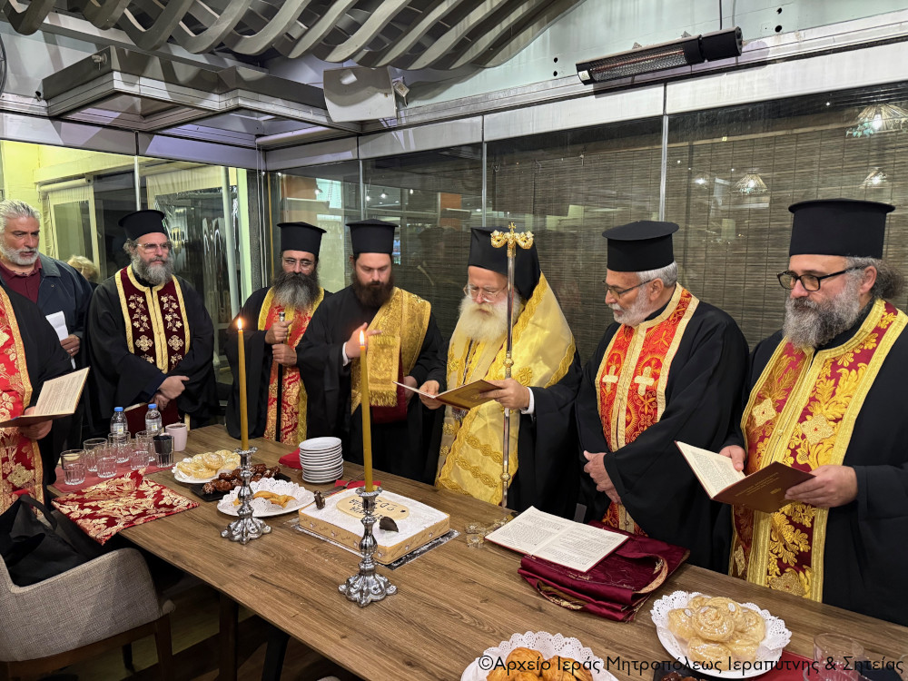 Το απόγευμα της Κυριακής 8 Φεβρουαρίου 2026 ο Σεβ. Μητροπολίτης Ιεραπύτνης και Σητείας κ. Κύριλλος, ανταποκρινόμενος σε ευγενή πρόσκληση της Προέδρου και των Μελών του Δ.Σ. του Συλλόγου Μικρασιατών Ιεράπετρας και περιστοιχούμενος από τον Πρωτοσύγκελλο της Μητροπόλεως Πανοσιολ. Αρχιμ. Αμβρόσιο Σκαρβέλη και τους Εφημερίους της πόλεως, μετέβη σε κεντρικό καφέ της παραλίας της πόλεως, όπου σε εγκάρδια ατμόσφαιρα ευλόγησε τη Βασιλόπιτα του Συλλόγου Μικρασιατών Ιεράπετρας.