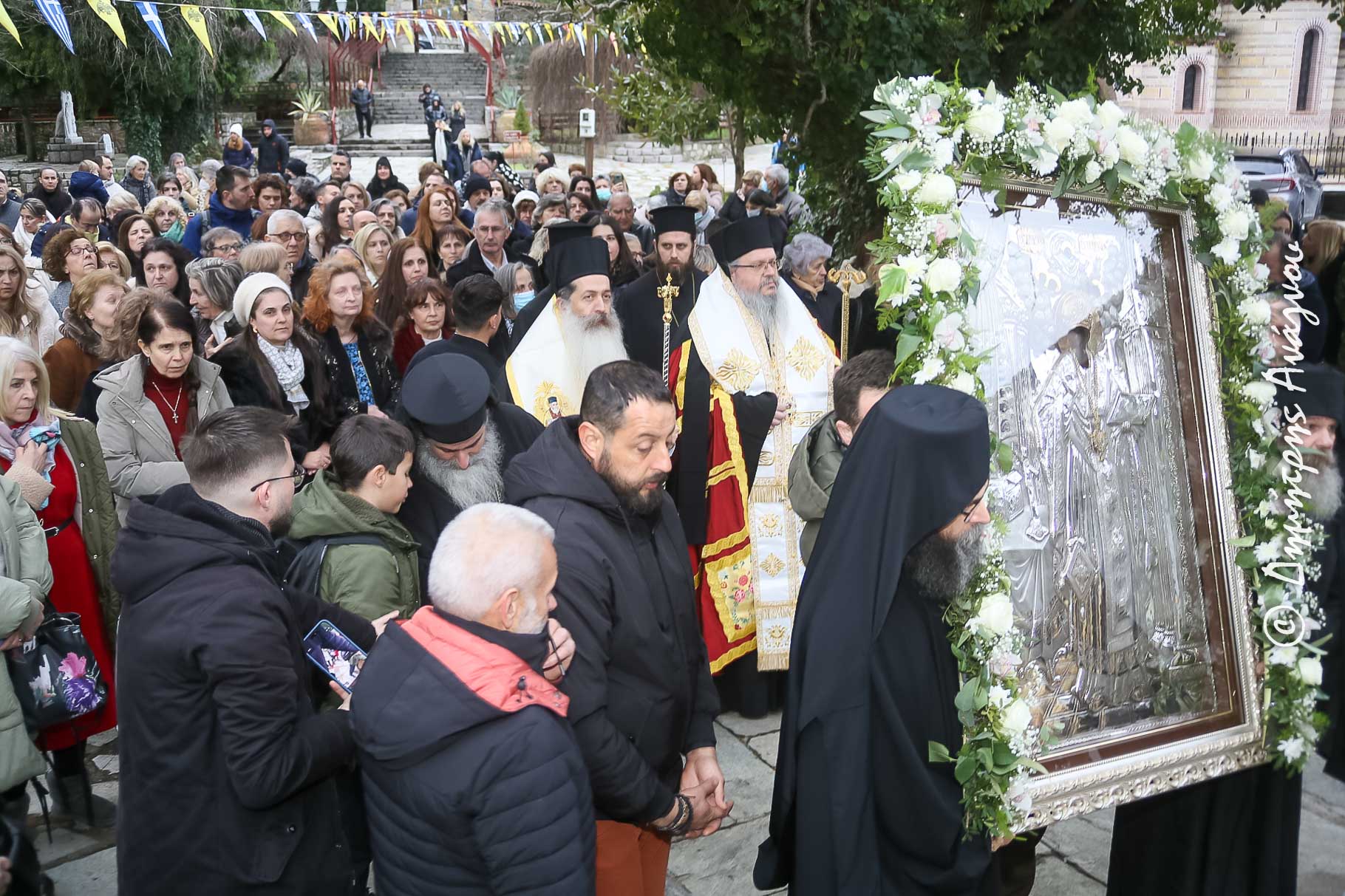 Επίσης, η παρουσία των ευλαβών προσκυνητών, εκ της Αγιοτόκου και περισποδάστου πόλεως της Λαρίσσης, των πνευματικών τέκνων του Αγίου Αχιλλίου, στο ιερό παλάδιο της Υπεραγίας Θεοτόκου της Αγαθωνίτισσας, μας συγκινεί και μας γεμίζει ιερά συναισθήματα.