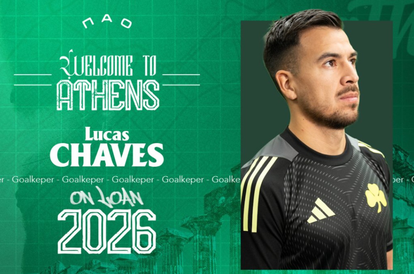 «Η ΠΑΕ Παναθηναϊκός ανακοινώνει τον δανεισμό, με οψιόν αγοράς, του Λούκας Τσάβες από την Αρχεντίνος Τζούνιορς! Ο Αργεντινός τερματοφύλακας αποτελεί την τέταρτη χειμερινή μετεγγραφική προσθήκη.