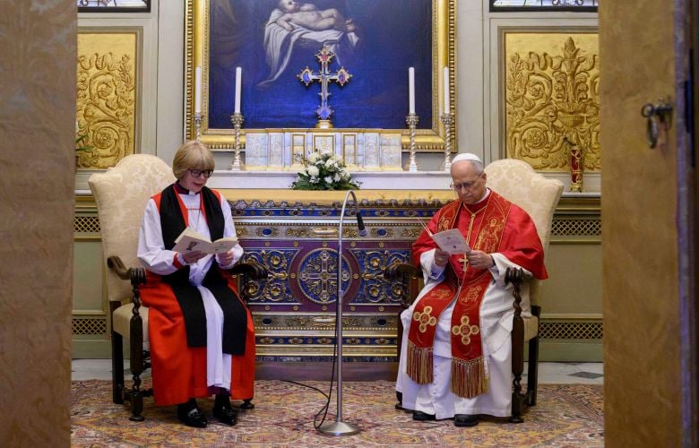 Ο πάπας Λέων ΙΔ’ υποδέχθηκε σήμερα την πρώτη γυναίκα που ηγείται των Αγγλικανών χριστιανών όλου του κόσμου, την αρχιεπίσκοπο του Καντέρμπουρι Σάρα Μάλαλι, η οποία ενθρονίστηκε πρόσφατα, και απηύθυνε έκκληση για ενότητα για να υποστηριχθεί πιο αποτελεσματικά η ειρήνη.