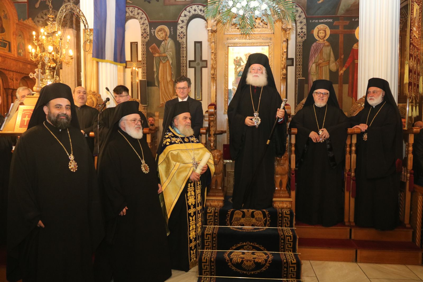 Τον Μακαριώτατο συνοδεύουν οι Σεβ. Μητροπολίτες Γουϊνέας κ. Γεώργιος, Μέμφιδος κ. Νικόδημος και ο Θεοφιλ. Επίσκοπος Μαρεώτιδος κ. Δαμασκηνός.