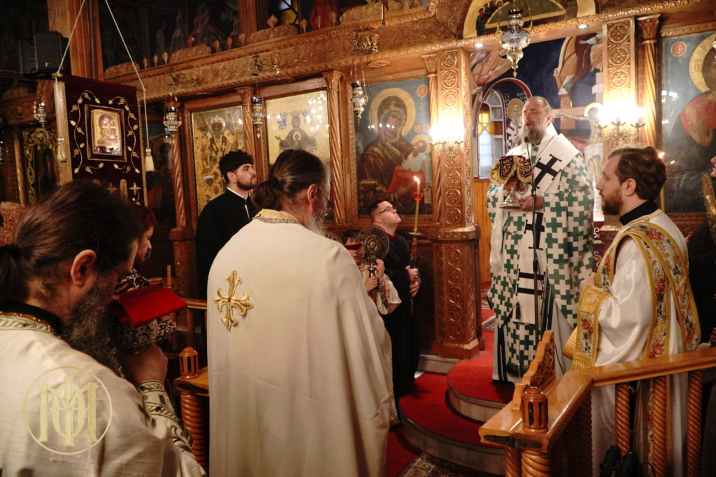 Με τον Ποιμενάρχη μας συλλειτούργησαν ο π. Γεώργιος Χαρίσης εκ της Ιεράς Μητροπόλεως Καρυστίας και Σκύρου και ο Ιερατικός Προϊστάμενος του Ναού, π. Βαρνάβας Γιάγκου.