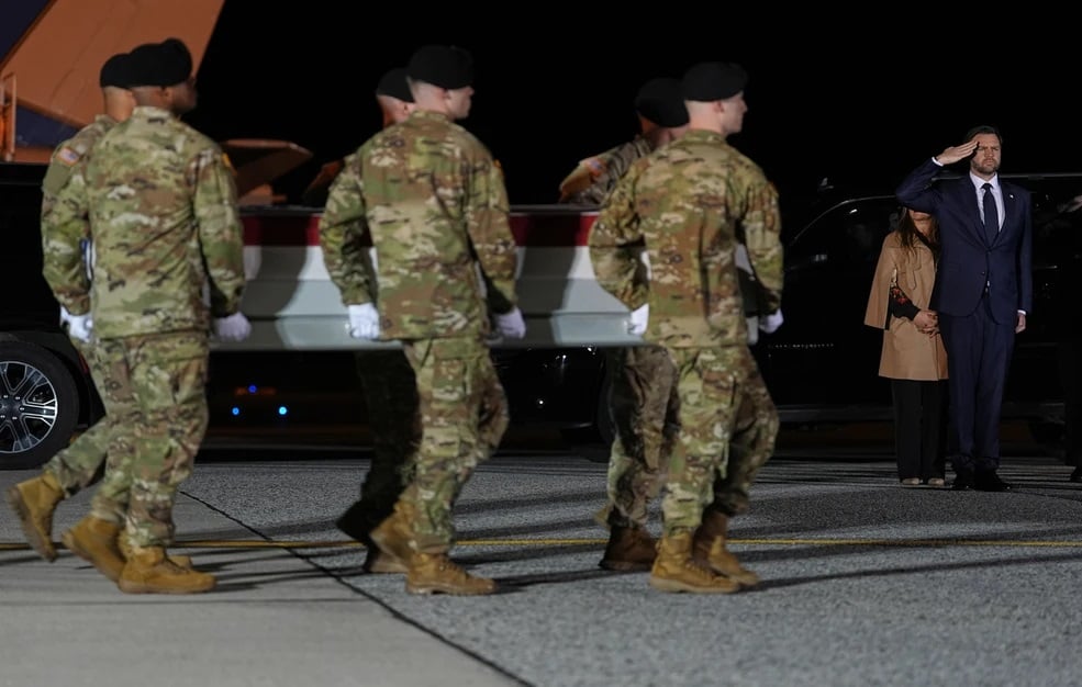 Ο Τζέι Ντι Βανς υποδέχεται το πτώμα του έβδομου Αμερικανού στρατιώτη που σκοτώθηκε στη Μέση Ανατολή