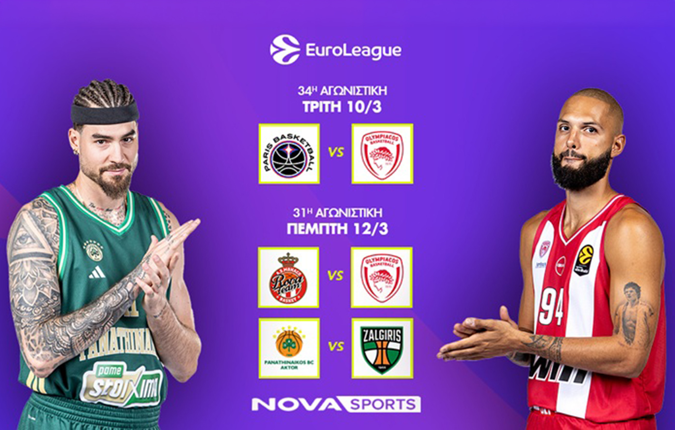 Καταιγιστική μπασκετική δράση έρχεται και αυτή την εβδομάδα με EuroLeague & EuroCup στο παρκέ του Novasports! Η EuroLeague, η κορυφαία ευρωπαϊκή διασυλλογική διοργάνωση, συνεχίζεται με αμείωτο ενδιαφέρον και τα φώτα πέφτουν στους αγώνες των ελληνικών ομάδων.