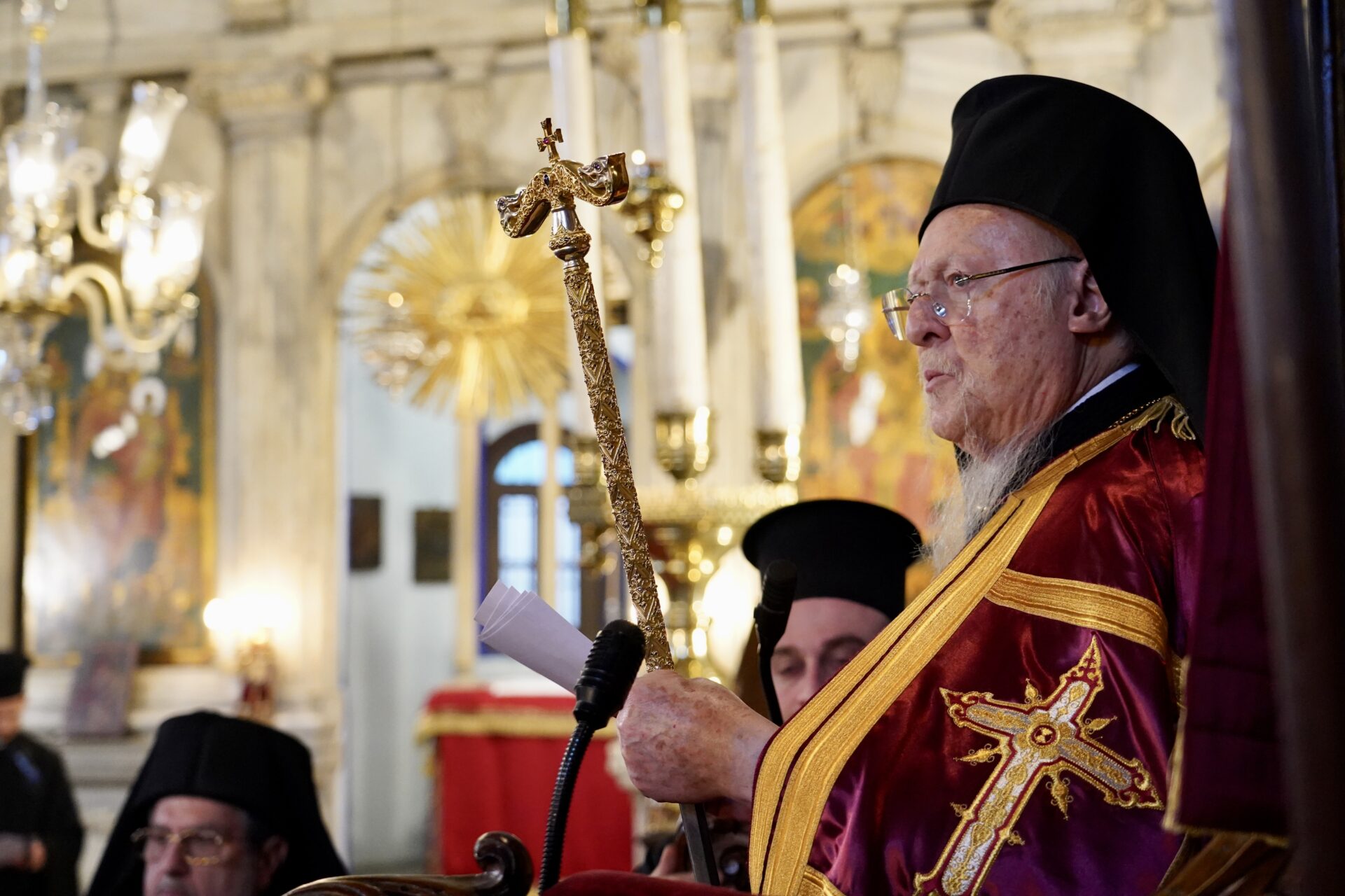 Ακολούθως, ο Παναγιώτατος εξέφρασε την Πατριαρχική ευαρέσκειά του και τον δίκαιον έπαινον προς τον Θεοφιλ. Επίσκοπο Αλικαρνασσού κ. Αδριανό, Επόπτη της Περιφερείας Φαναρίου-Κερατίου Κόλπου, “ο οποίος μοχθεί ιδιαιτέρως διά τας ποιμαντικάς και λειτουργικάς ανάγκας της Κοινότητος ταύτης, η οποία φιλοξενεί το Ουκρανόφωνον ποίμνιον της καθ᾽ ημάς Αγιωτάτης Αρχιεπισκοπής.” Επίσης, συνεχάρη και ευλόγησε πατρικώς τον Ιερατικώς Προϊστάμενο της Κοινότητος Πανοσιολ. Αρχιμανδρίτη του Οικουμενικού Θρόνου κ. Μεθόδιο Βολόστσενκο, και ευχαρίστησε την Εκκλησιαστική Επιτροπή της Κοινότητος “διά τον ζήλον με τον οποίον εργάζονται προς συντήρησιν και προαγωγήν αυτής”.