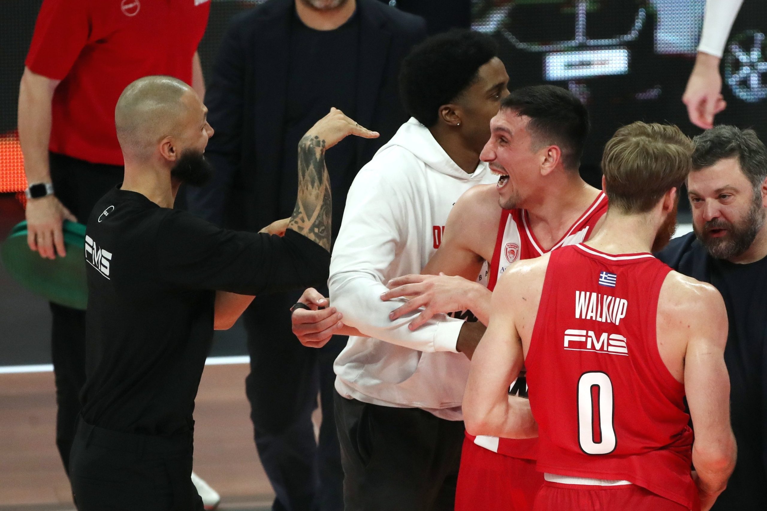Μάλιστα, μετά το τέλος του αγώνα, ο Εβάν Φουρνιέ ο οποίος δεν αγωνίστηκε λόγω τιμωρίας, αλλά βρέθηκε στο ΟΑΚΑ, πανηγύρισε μαζί με τον Λαρεντζάκη, με την κίνηση κόμπρα που είναι ο πανηγυρισμός του Έλληνα γκαρντ.
