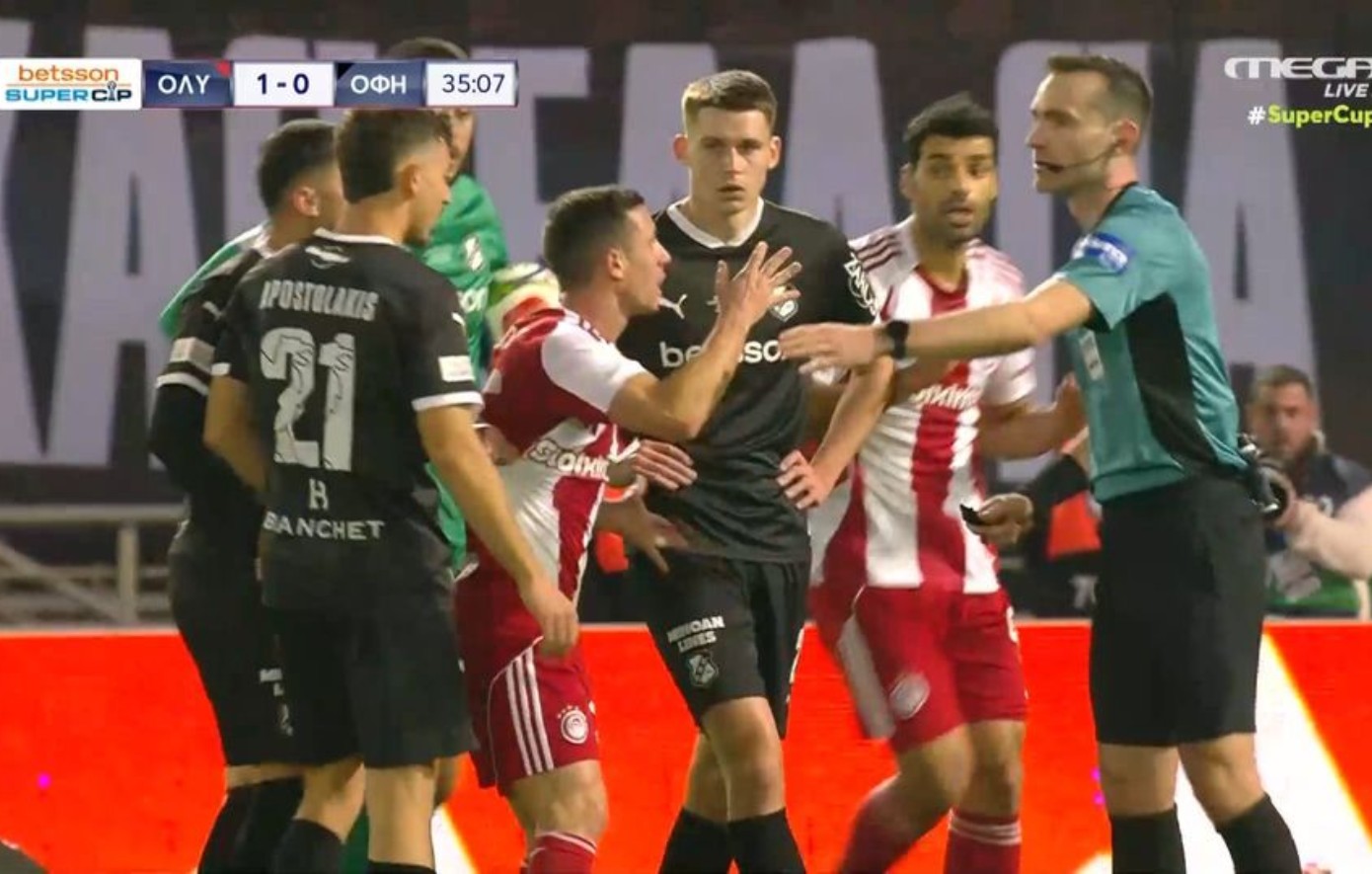 Το πρώτο ημίχρονο του τελικού του Σούπερ Καπ ανάμεσα στον Ολυμπιακό και τον ΟΦΗ έληξε με το 0-0 να παραμένει, καθώς το γκολ του Μουζακίτη στο 36ο λεπτό ακυρώθηκε από τον διαιτητή Τσακαλίδη, με το VAR να επιβεβαιώνει την απόφασή του.