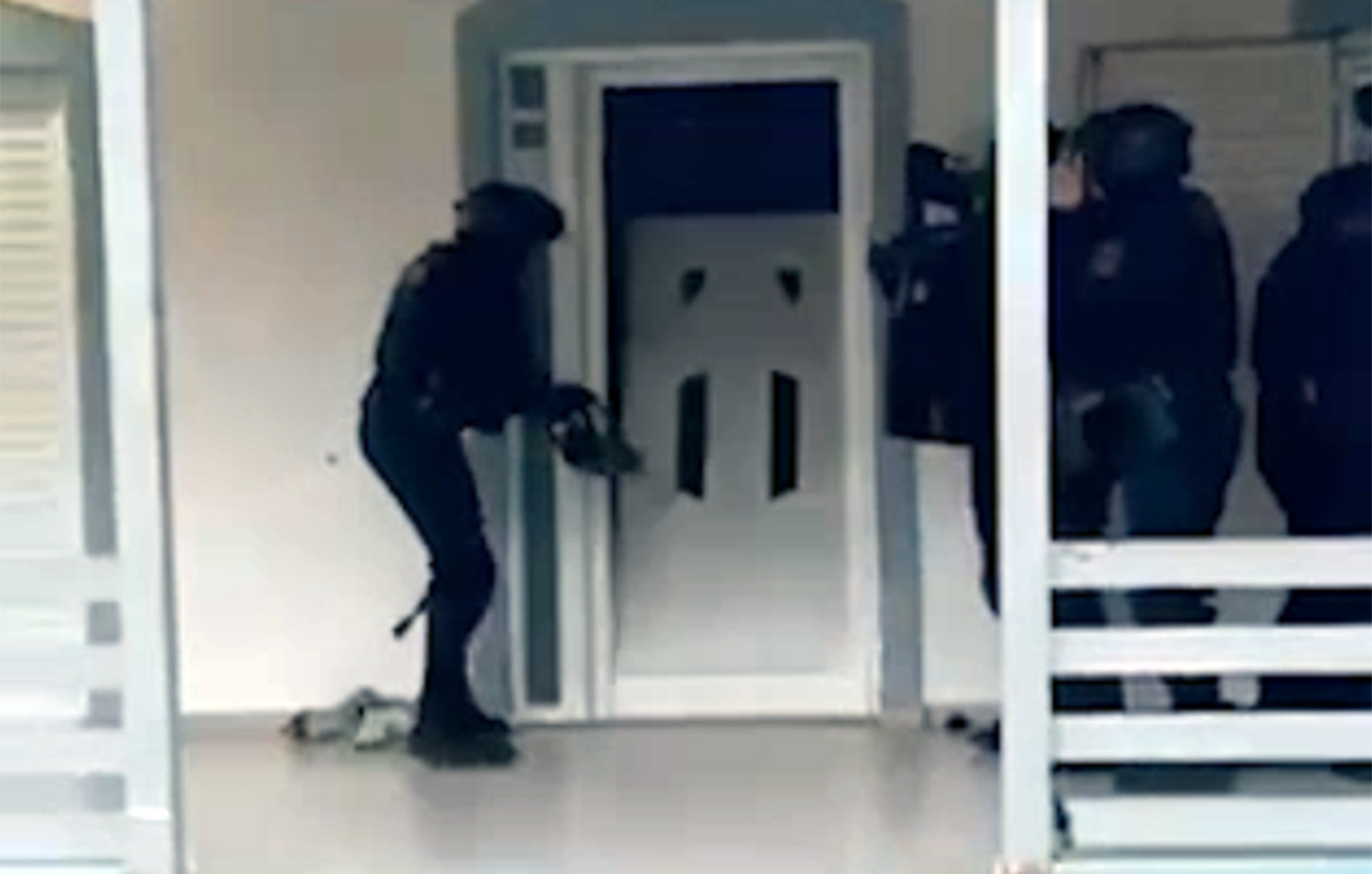 Πάνοπλοι αστυνομικοί σπάνε την πόρτα σπιτιού στη διάρκεια εφόδου για σπείρα που έκανε κλοπές και απάτες στην Αττική