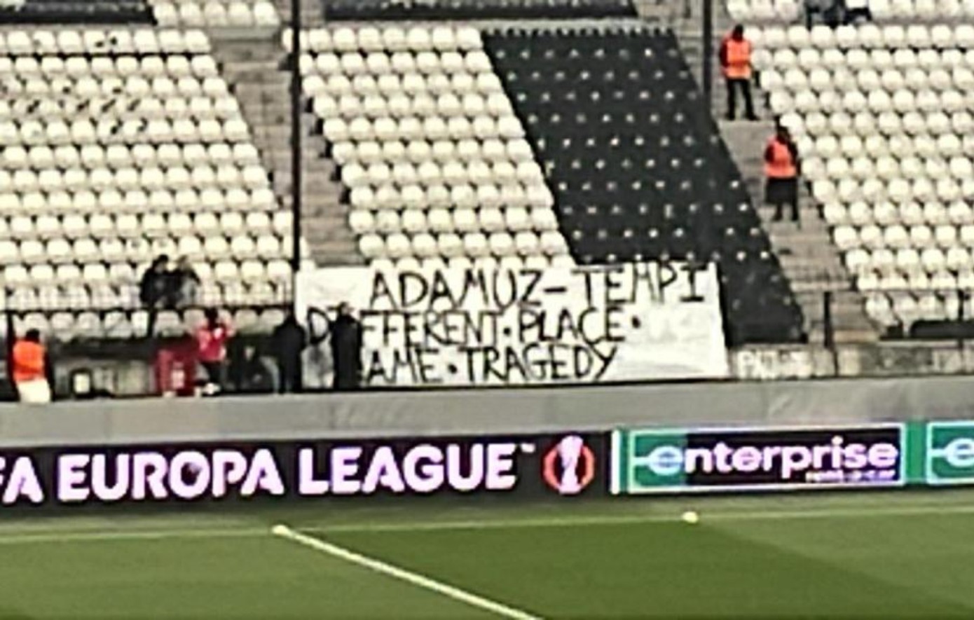 Οι οπαδοί του ΠΑΟΚ κρέμασαν πανό για τις τραγωδίες σε Τέμπη και Αδαμούθ και αυτοί της Μπέτις τους συνεχάρησαν μέσω των social media, πριν την έναρξη του αγώνα για το Europa League.