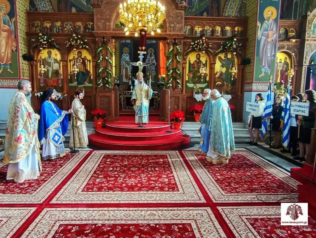 Την κυριώνυμη ημέρα της εορτής τελέσθηκαν ο πανηγυρικός Όρθρος μετ’ αρτοκλασίας και η Αρχιερατική Θεία Λειτουργία προεξάρχοντος του Σεβασμιωτάτου Μητροπολίτη Σπάρτης κ. Ευσταθίου.
