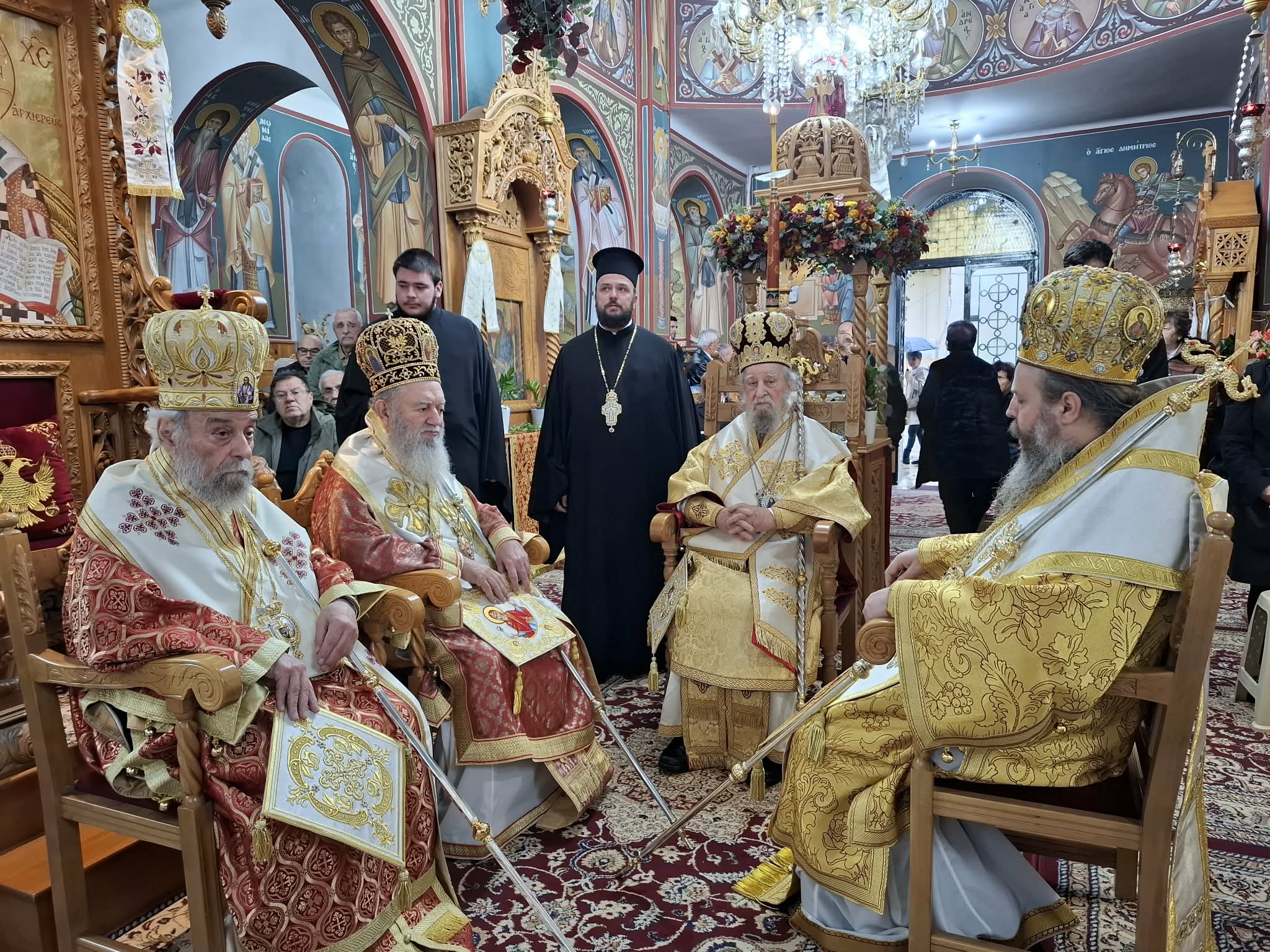 Τους Σεβασμιωτάτους Αρχιερείς πλαισίωσαν οι Πανοσ. Αρχιμ. Πρωτοσύγκελλος της Ιεράς Μητροπόλεως, Νικόδημος Πόγκας, Νικόδημος Τσιμόγιαννης, Ιεροκήρυξ της Ιεράς Μητροπόλεως, Γεράσιμος Παρίσης, Αρχιερατικός Επίτροπος Καρύστου, Νεκτάριος Καπενής, οι Πρωτοπρ. Βασίλειος Πασσάς, εκ της Ιεράς Μητροπόλεως Κηφισίας, Στυλιανός Πεταχτής, εφημέριος Καδδίου και οι Διάκονοι Δημήτριος Ζλατίνοβ, Σταύρος Καλαφάτης, Θεόδωρος Πέππας.