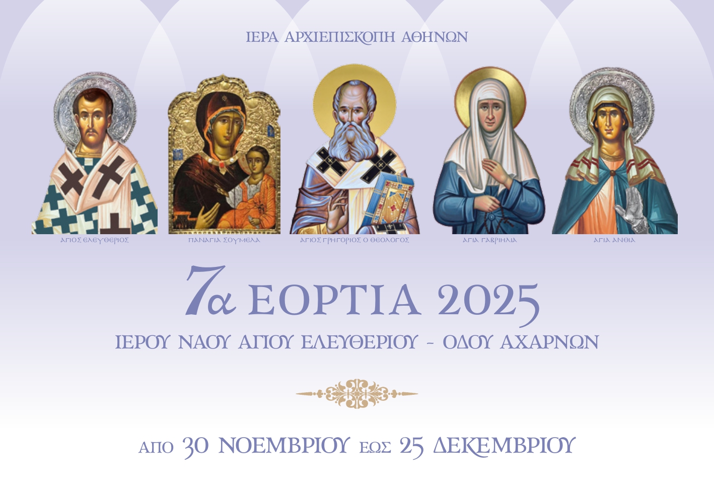 Πρόγραμμα 7ων Εορτίων του Ι.Ν. Αγίου Ελευθερίου οδού Αχαρνών