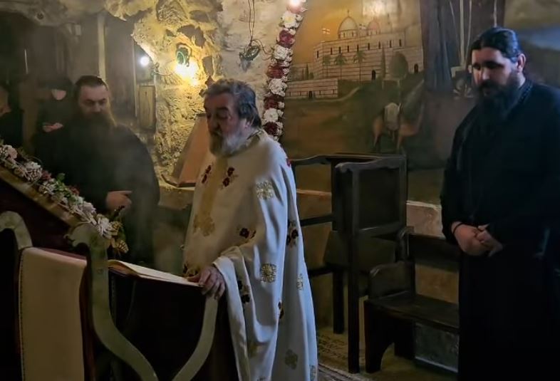 Εξαιτίας αυτής της κατάστασης στην Αγία Γη, η ακολουθία του Μικρού Αποδείπνου και η Β΄ Στάση των Χαιρετισμών τελέσθηκε εχθές στον κεντρικό μοναστηριακό και Πατριαρχικό Ναό των Αγίων Κωνσταντίνου και Ελένης υπό του Σεβασμιωτάτου Μητροπολίτου Καπιτωλιάδος κ. Ησυχίου. Στην ακολουθία παρέστη συμπροσευχόμενος ο Πατριάρχης Ιεροσολύμων κ.κ. Θεόφιλος.