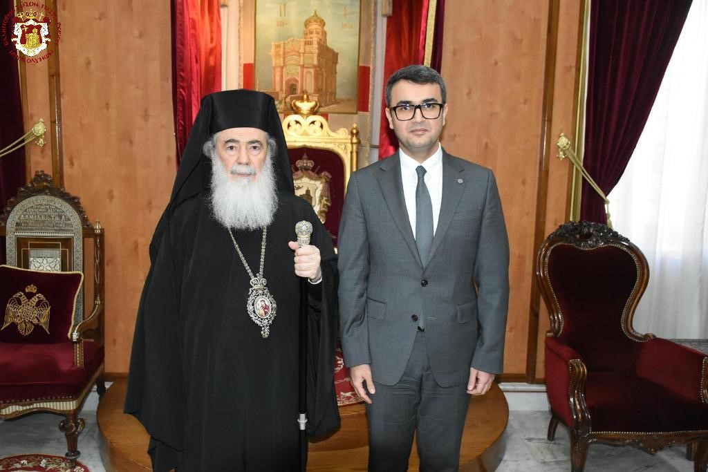 Συγκεκριμένα, ο Μακαριώτατος υποδέχθηκε τον Πρέσβη του Αζερμπαϊτζάν στο Ισραήλ, Taleh Nazarl και τον κ. Ravan Hasanov, Executive Director of the Bacu International Multiculturalism Center. Αμφότεροι τον συνεχάρησαν για την ποιμαντική και πολυπολυτισμική δραστηριότητά του στην διασφάλιση του καθεστώτος των Αγίων Τόπων και τον προσκάλεσαν να επισκεφθεί το κράτος τους, το οποίον διαφυλάσσει την Μουσουλμανική αλλά και την Χριστιανική κληρονομία, όπως είπαν.
