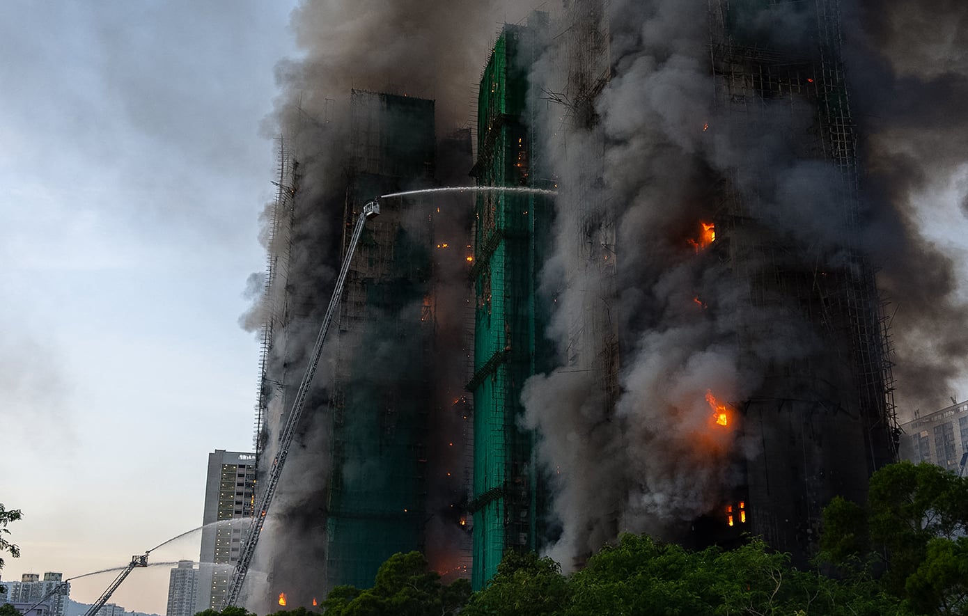 Η πυρκαγιά την περασμένη Τετάρτη -η πιο θανατηφόρα των τελευταίων δεκαετιών στο Χονγκ Κονγκ- κατέστρεψε πέντε από τους επτά πύργους στο συγκρότημα κατοικιών Wang Fuk Court, το οποίο βρισκόταν υπό ανακαίνιση στη συνοικία Τάι Πο, στο βόρειο τμήμα του Χονγκ Κονγκ, αναγκάζοντας χιλιάδες ανθρώπους να εγκαταλείψουν τα σπίτια τους.