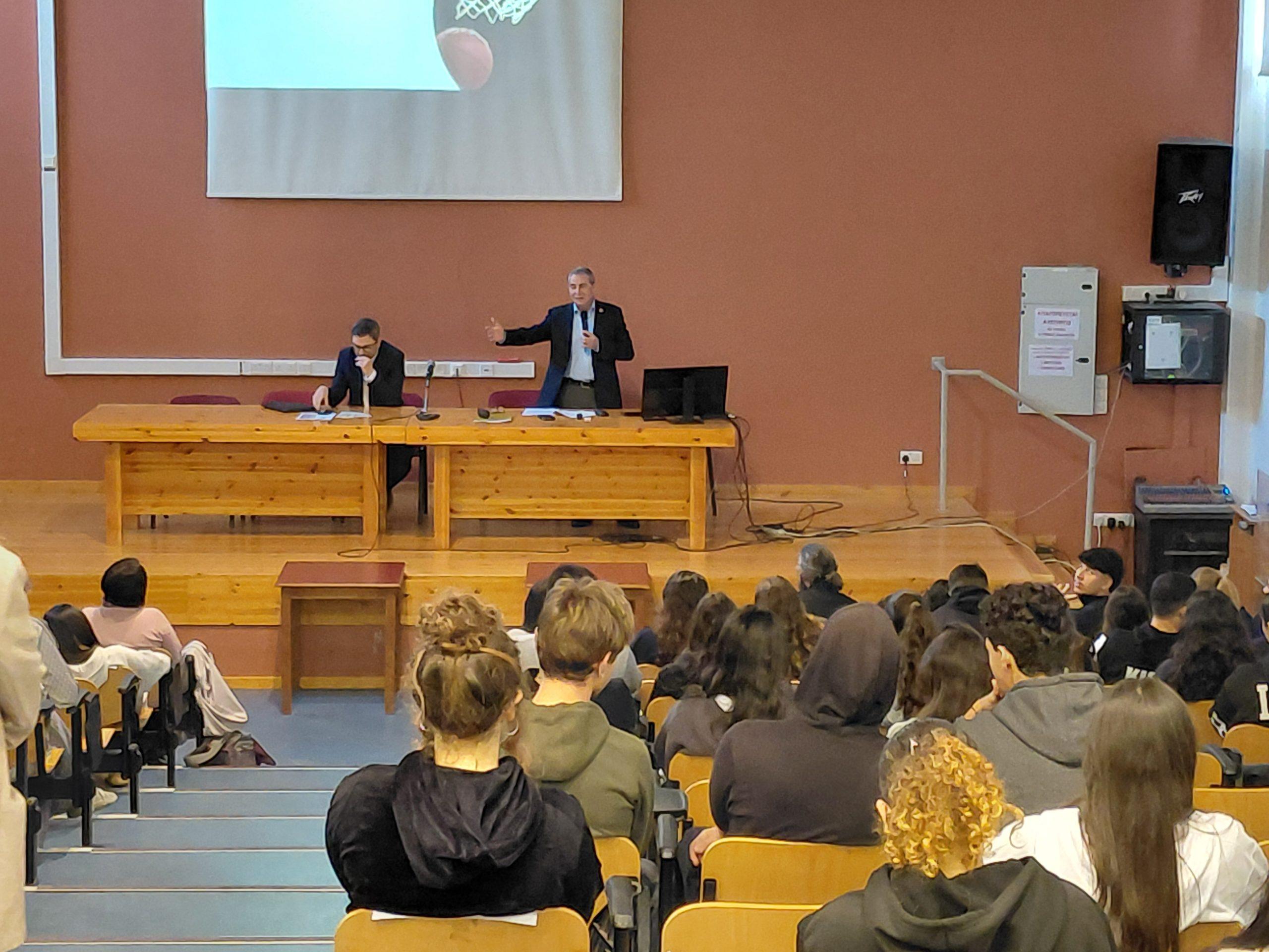 Ο κ. Πρύτανης ανάλυσε στους μαθητές τη μετάβαση από το σχολείο στο Πανεπιστήμιο και γενικότερα την ανώτερη εκπαίδευση και επαγγελματική προοπτική των νέων στη σύγχρονη εποχή, ενώ ο κ. Πισσαρίδης παρουσίασε τα Προγράμματα Σπουδών του Πανεπιστημίου Κύπρου και θέματα που αφορούν τη φοιτητική ζωή.