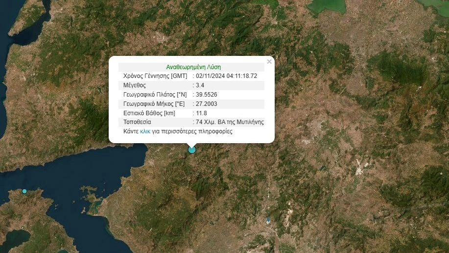 Σεισμός μεγέθους 3,4 Ρίχτερ σημειώθηκε τα ξημερώματα του Σαββάτου (2/11) στην Μυτιλήνη.