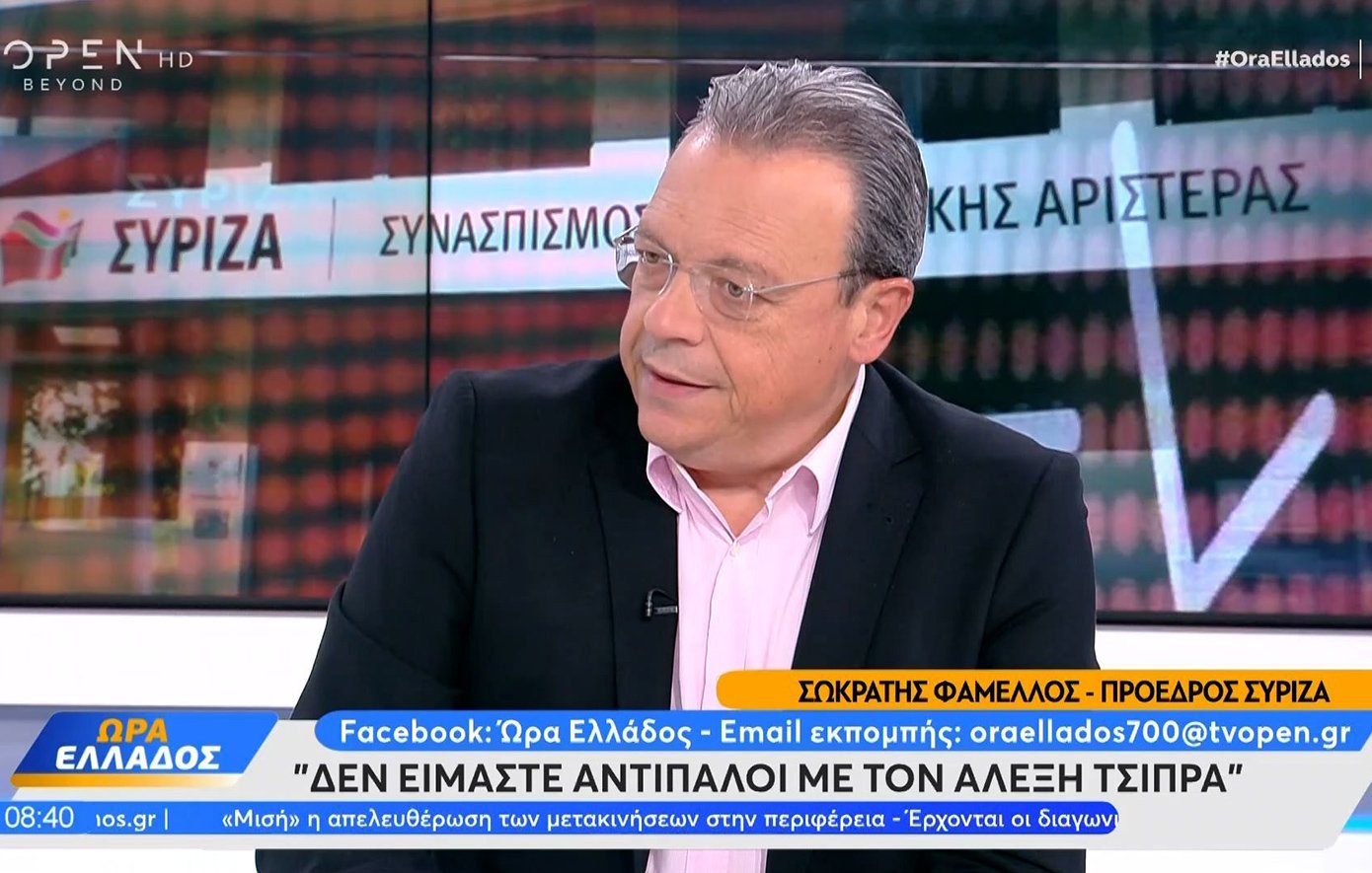 Τον προβληματισμό του σε σχέση με την παραίτηση Τσίπρα εξέφρασε ο πρόεδρος του ΣΥΡΙΖΑ-ΠΣ, Σωκράτης Φάμελλος σε συνέντευξή του στο OPEN, ξεκαθαρίζοντας ωστόσο ότι δεν τον βλέπει ως αντίπαλο.
