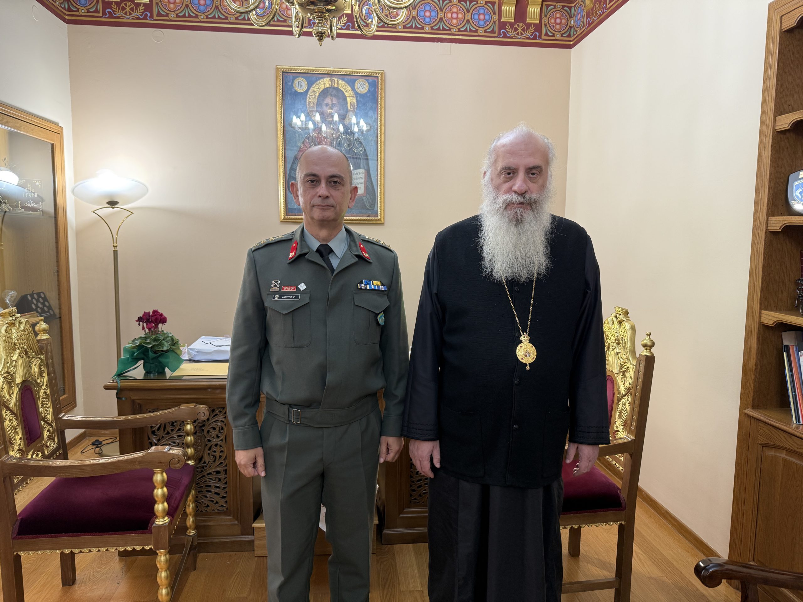 Εθιμοτυπική επίσκεψη στον Σεβασμιώτατο Μητροπολίτη Μαντινείας και Κυνουρίας κ. Επιφάνιο, πραγματοποίησε σήμερα, Τετάρτη 5 Νοεμβρίου ο Διοικητής του 9ου Συντάγματος Πεζικού – ΚΕΝ Καλαμάτας Σχης (ΠΖ) Γεώργιος Χαρίτος, ενόψει της μετατροπής του 11ου Συντάγματος Πεζικού σε Τάγμα Εκπαιδεύσεως Νεοσυλλέκτων, υπαγόμενο πλέον διοικητικά στο 9ο Σύνταγμα Πεζικού.