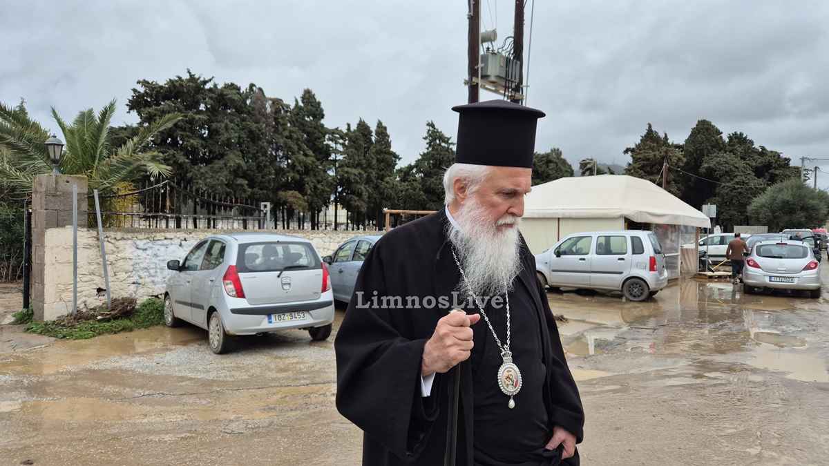Παρά τη δύσκολη κατάσταση που επικρατούσε και στον ίδιο τον ναό, ο Μητροπολίτης κ. Ιερόθεος άφησε τα πάντα και βγήκε στους δρόμους της Μύρινας, θέλοντας να σταθεί δίπλα στους πολίτες, να τους στηρίξει και να τους μεταφέρει μήνυμα δύναμης και ελπίδας μέσα στις ώρες της δοκιμασίας.