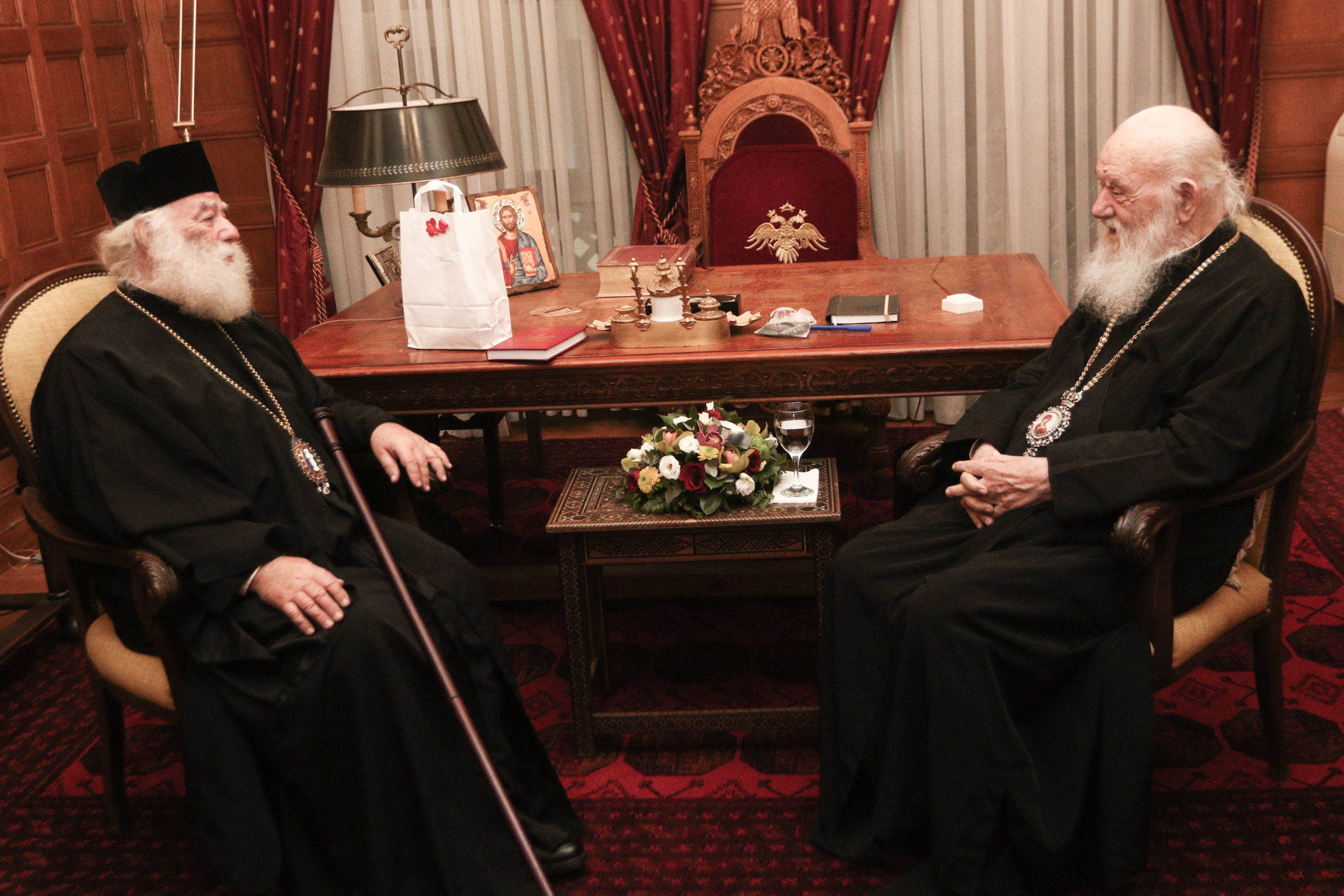 Στη συνέχεια ο Αρχιεπίσκοπος είχε συνάντηση με τον Πάπα και Πατριάρχη Αλεξανδρείας και πάσης Αφρικής κ.κ. Θεόδωρο. Ο Πατριάρχης Αλεξανδρείας πραγματοποίησε εθιμοτυπική επίσκεψη στον Μακαριώτατο στο πλαίσιο της επίσκεψής του στην Ελλάδα.