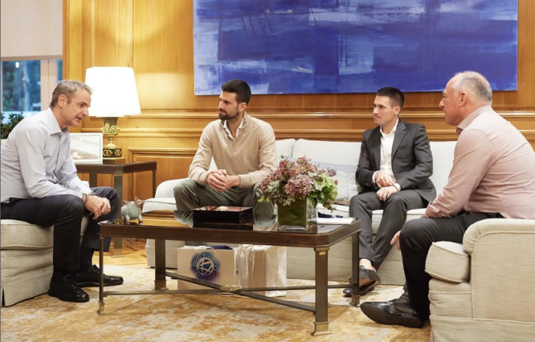 «Σήμερα το απόγευμα υποδέχθηκα στο γραφείο μου τον θρύλο του τένις Νόβακ Τζόκοβιτς, τον αδερφό του Τζόρτζε και τον πρόεδρο της ελληνικής φίλαθλης ομοσπονδίας αντισφαίρισης Θοδωρή Γκλαβά. Συζητήσαμε για το πώς θα ανεβάσουμε το ελληνικό τένις ακόμα πιο ψηλά, μετά και το εξαιρετικά επιτυχημένο Hellenic championship ATP 250».
