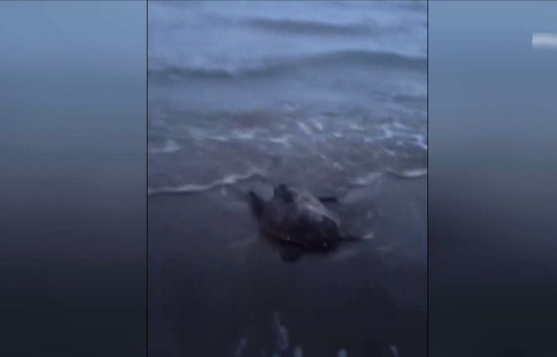 Η δημοσιογράφος της ΕΡΤ Μαρίνα Μοσχάτ παρουσίασε την κινητοποίηση των τοπικών αρχών Κερκύρας όταν μια νεαρή χελώνα ξεβράστηκε στις ακτές λόγω της κακοκαιρίας.