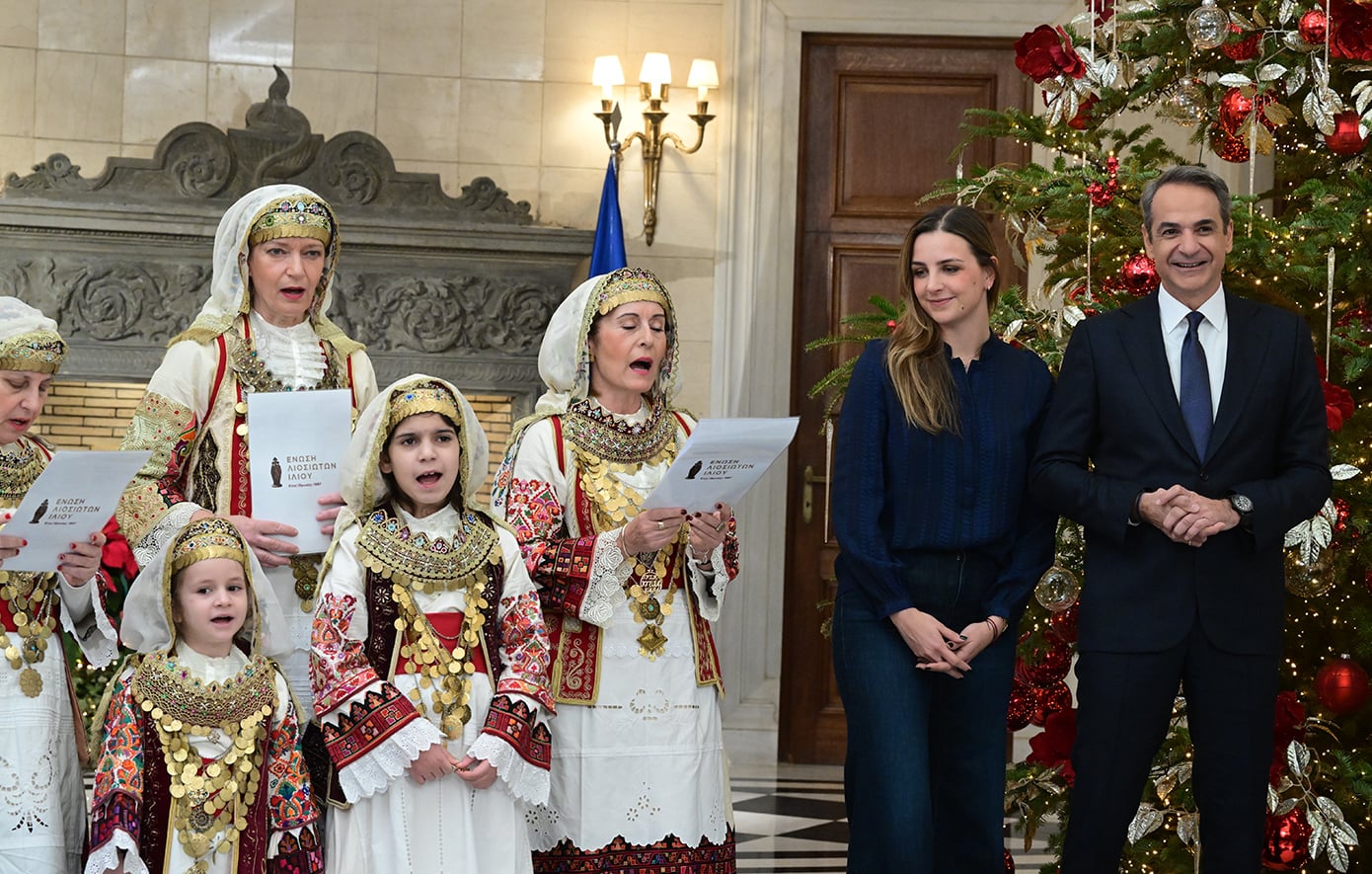 Κάλαντα της Πρωτοχρονιάς άκουσαν στο Μέγαρο Μαξίμου ο πρωθυπουργός Κυριάκος Μητσοτάκης και η κόρη του Σοφία.