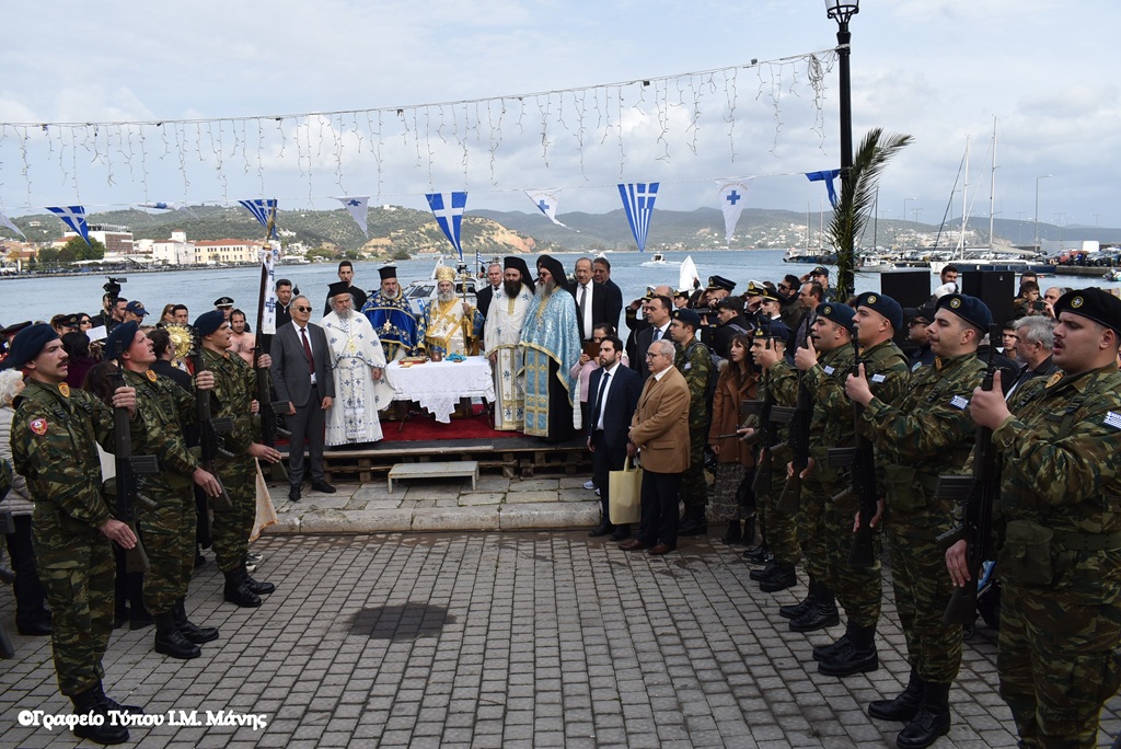 Με την δέουσα εκκλησιαστική τάξη τελέστηκαν τα Άγια Θεοφάνεια στην πόλη του Γυθείου. Ο Σεβ. Μητροπολίτης Μάνης κ. Χρυσόστομος Γ’ μετά την Θ. Λειτουργία στον Ι.Ν. Αγ. Γεωργίου, τέλεσε τον Αγιασμό και στη συνέχεια ευλογήθηκαν με αυτόν και την ρίψη του Τιμίου Σταυρού τα ύδατα στο λιμάνι της πόλεως.