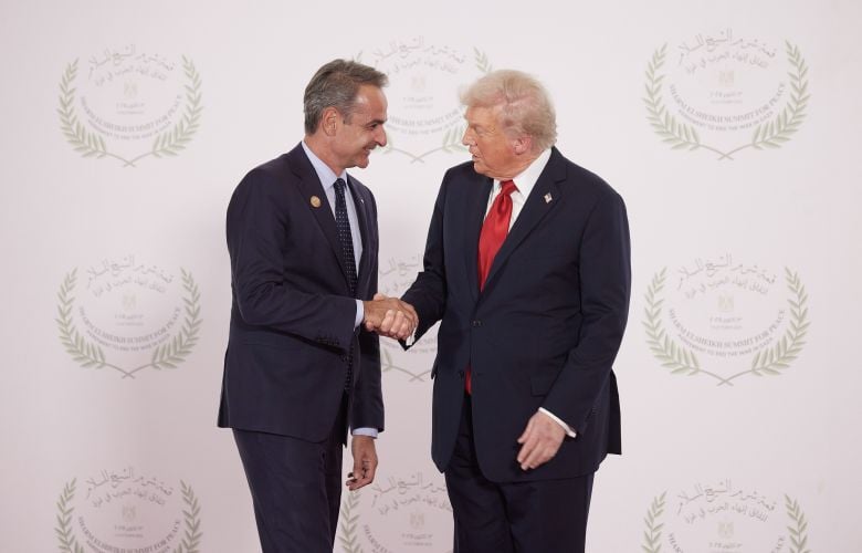 Ο Έλληνας πρωθυπουργός, Κυριάκος Μητσοτάκης και ο Αμερικανός πρόεδρος, Ντόναλντ Τραμπ είχαν θερμή χειραψία σήμερα το απόγευμα στο περιθώριο της Συνόδου για την ειρήνη στη Γάζα που διεξήχθη στην Αίγυπτο.
