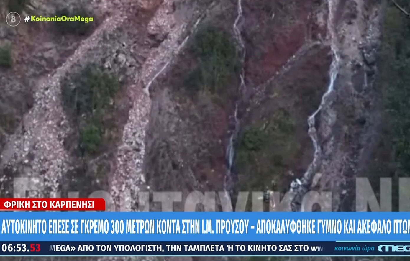 Θρίλερ στο Καρπενήσι: Ακέφαλη σορός χωρίς ρούχα σε αυτοκίνητο που έπεσε σε γκρεμό 300 μέτρων – Σοκαριστικές εικόνες
