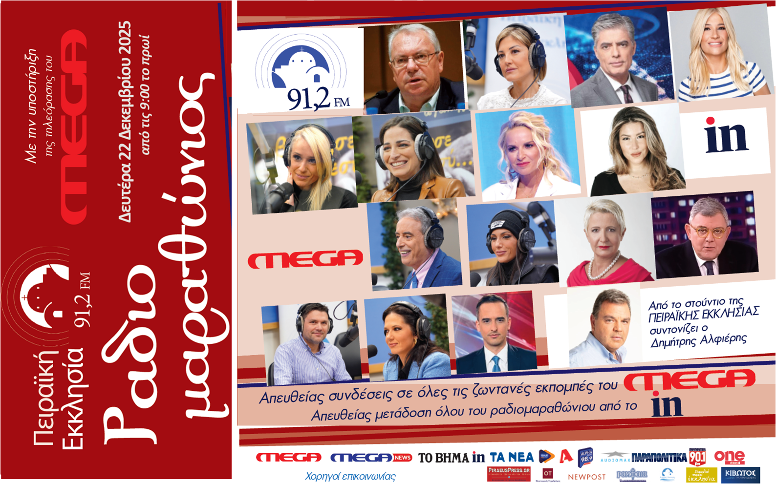 Τη Δευτέρα ο μεγάλος Ραδιομαραθώνιος από την Πειραϊκή Εκκλησία 91,2 fm μέσα από την τηλεόραση του MEGA