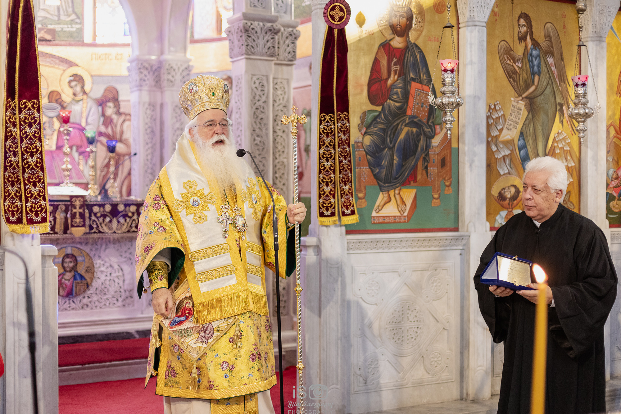 Τέλος, εκ μέρους του Συνδέσμου Ιεροψαλτών, ο Πρόεδρος κ. Ευστάθιος Γραμμένος προσέφερε τιμητική πλακέτα στον κ. Γεώργιο Κωνσταντίνου, ως αναγνώριση της προσφοράς του στη διακονία της βυζαντινής εκκλησιαστικής μουσικής και της συνέχειας της ιερής παραδόσεως.