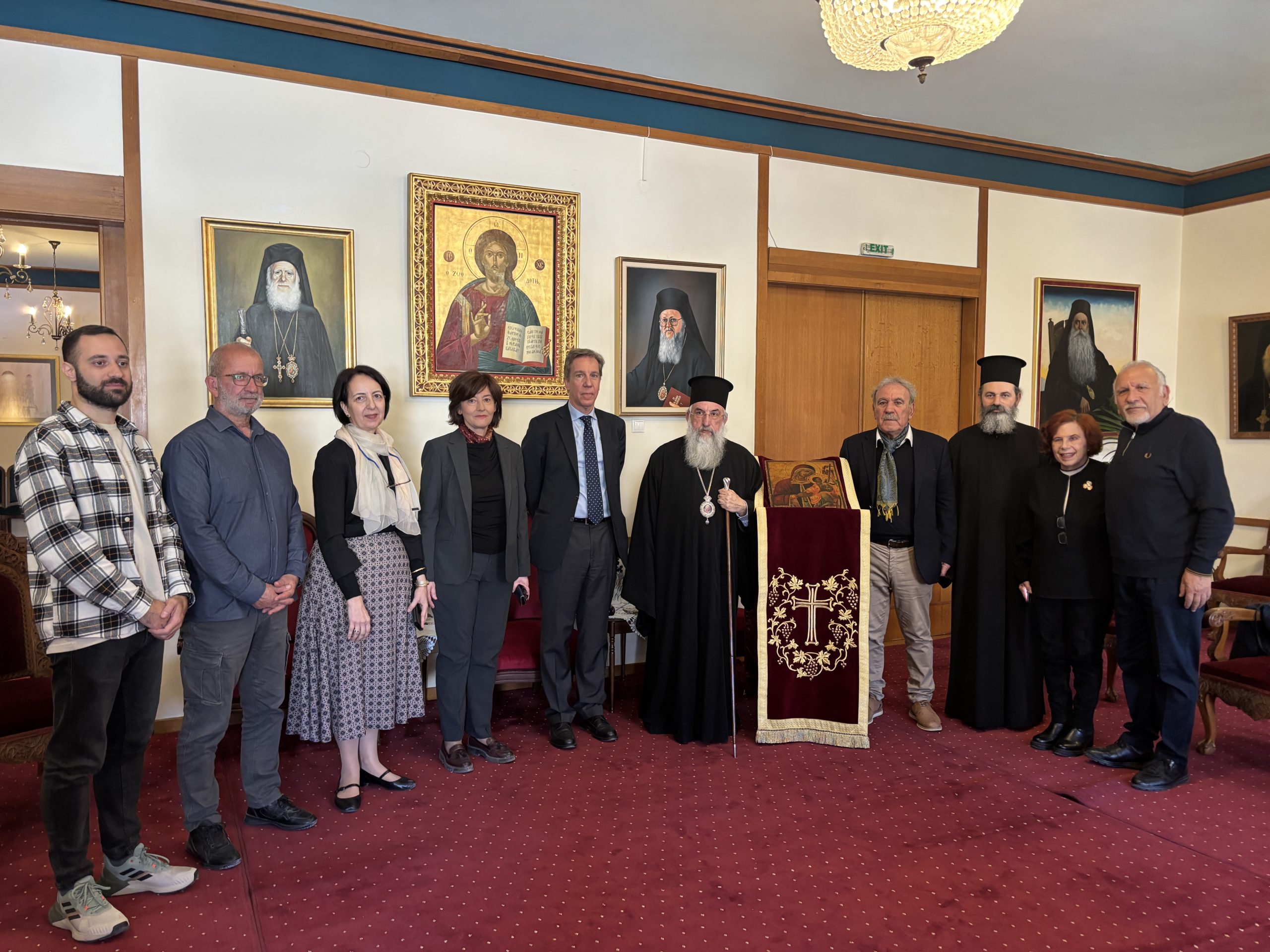 Ο Σεβασμιώτατος Αρχιεπίσκοπος Κρήτης κ. Ευγένιος, το πρωί της Μεγάλης Τρίτης 7 Απριλίου 2026, υποδέχθηκε στο Μέγαρο της Ιεράς Αρχιεπισκοπής Κρήτης την εικόνα της «Παναγίας Αμολύντου», την οποία μετέφερε και παρέδωσε ο Εξοχώτατος Πρέσβης της Ελλάδας στη Γερμανία κ. Αλέξανδρος Παπαϊωάννου, συνοδευόμενος από τις κ.κ. Βάσσω Παπαγεωργίου, προϊσταμένη της Διεύθυνσης Τεκμηρίωσης και Προστασίας Πολιτιστικών Αγαθών του Υπουργείου Πολιτισμού και Χρυσαυγή Κούτσικου, Δρ Βυζαντινής Αρχαιολογίας & Τέχνης, στη Διεύθυνση Τεκμηρίωσης & Προστασίας Πολιτιστικών Αγαθών – Τμήμα Εποπτείας Ιδιωτικών Αρχαιολογικών Συλλογών & Αρχαιοπωλείων.