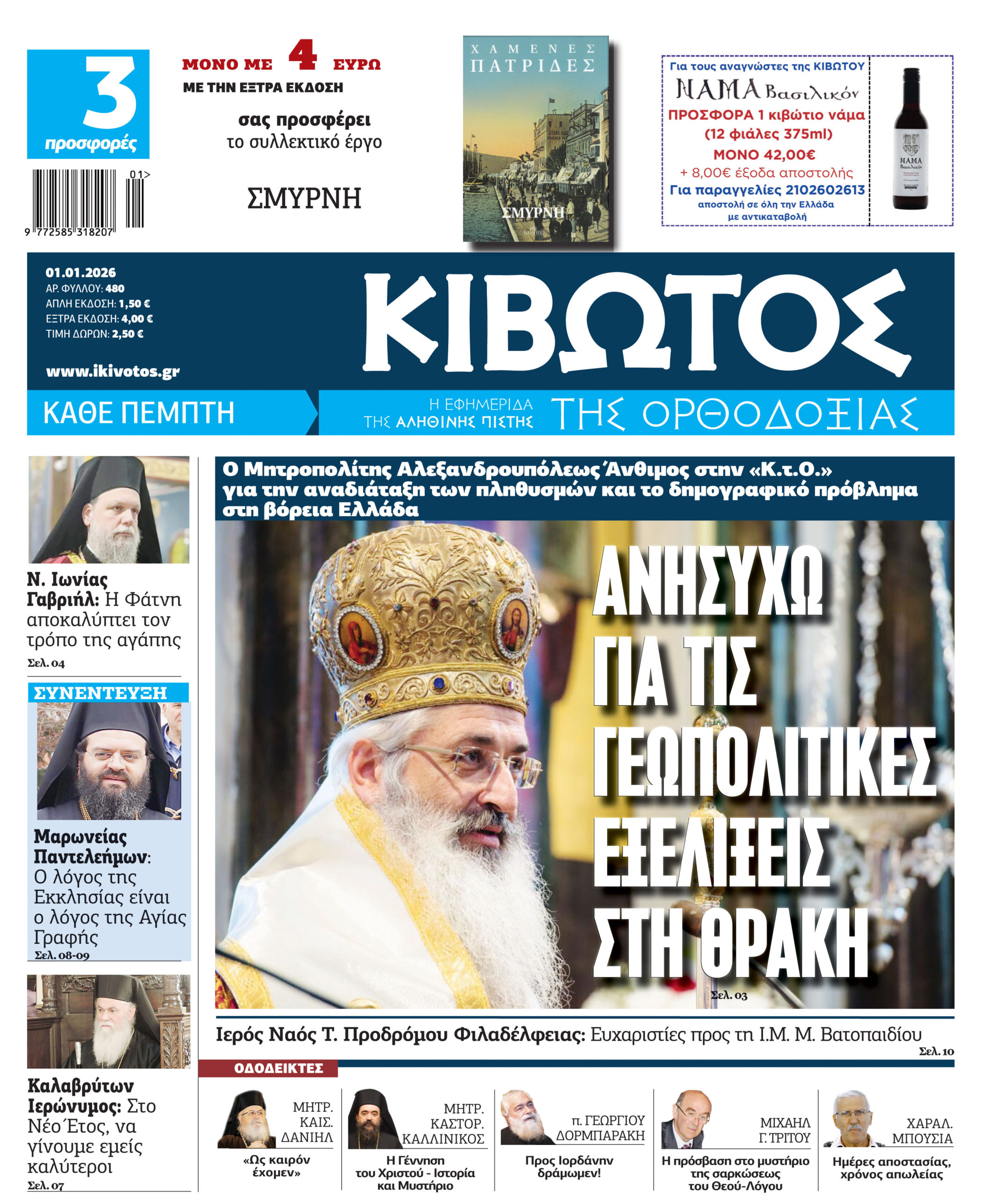 Την Πέμπτη, 01 Ιανουαρίου, κυκλοφορεί το νέο φύλλο της Εφημερίδας «Κιβωτός της Ορθοδοξίας» – Νέα Χρονιά, Νέες Προσφορές, Νέα τιμή