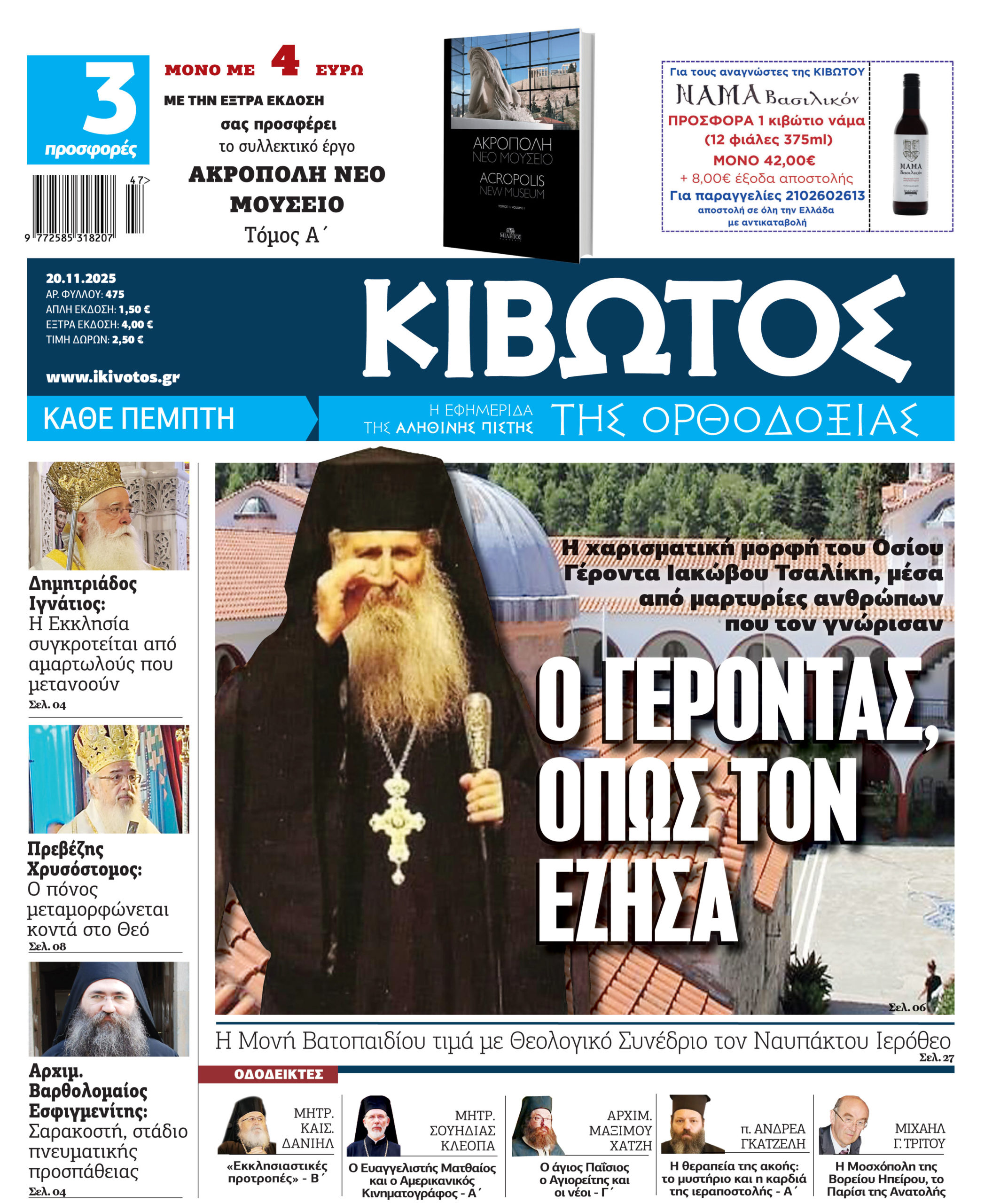 Για βιβλία και εικόνες που κυκλοφορούν με το φύλλο της Κιβωτού, πληροφορίες και παραγγελίες, τηλ. 210 6923211, [email protected]